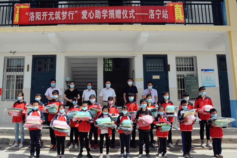 2020年5月27-29日,“洛陽開元筑夢行”愛心捐助活動分別在欒川秋扒鄉(xiāng)中心小學(xué)、洛寧故縣中心學(xué)校、宜陽蓮莊鎮(zhèn)政府舉行,共資助了61名貧困學(xué)生,累計(jì)捐款捐物近4萬元;